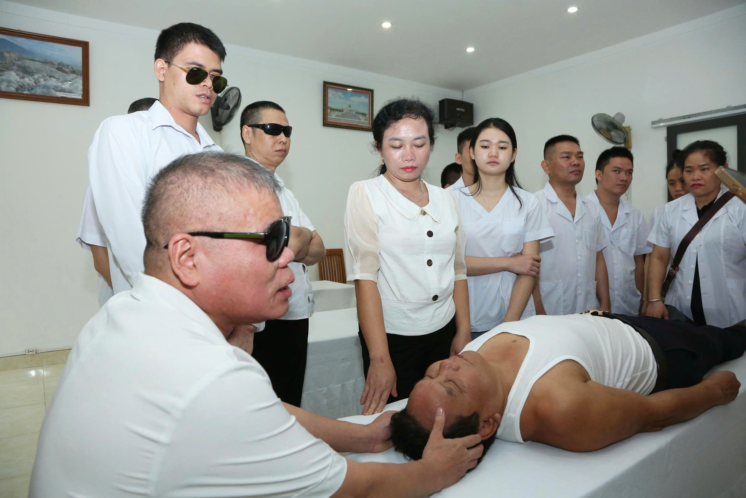Ảnh: Các kỹ thuật viên thực hành, trao đổi kinh nghiệm nâng cao tay nghể massage.