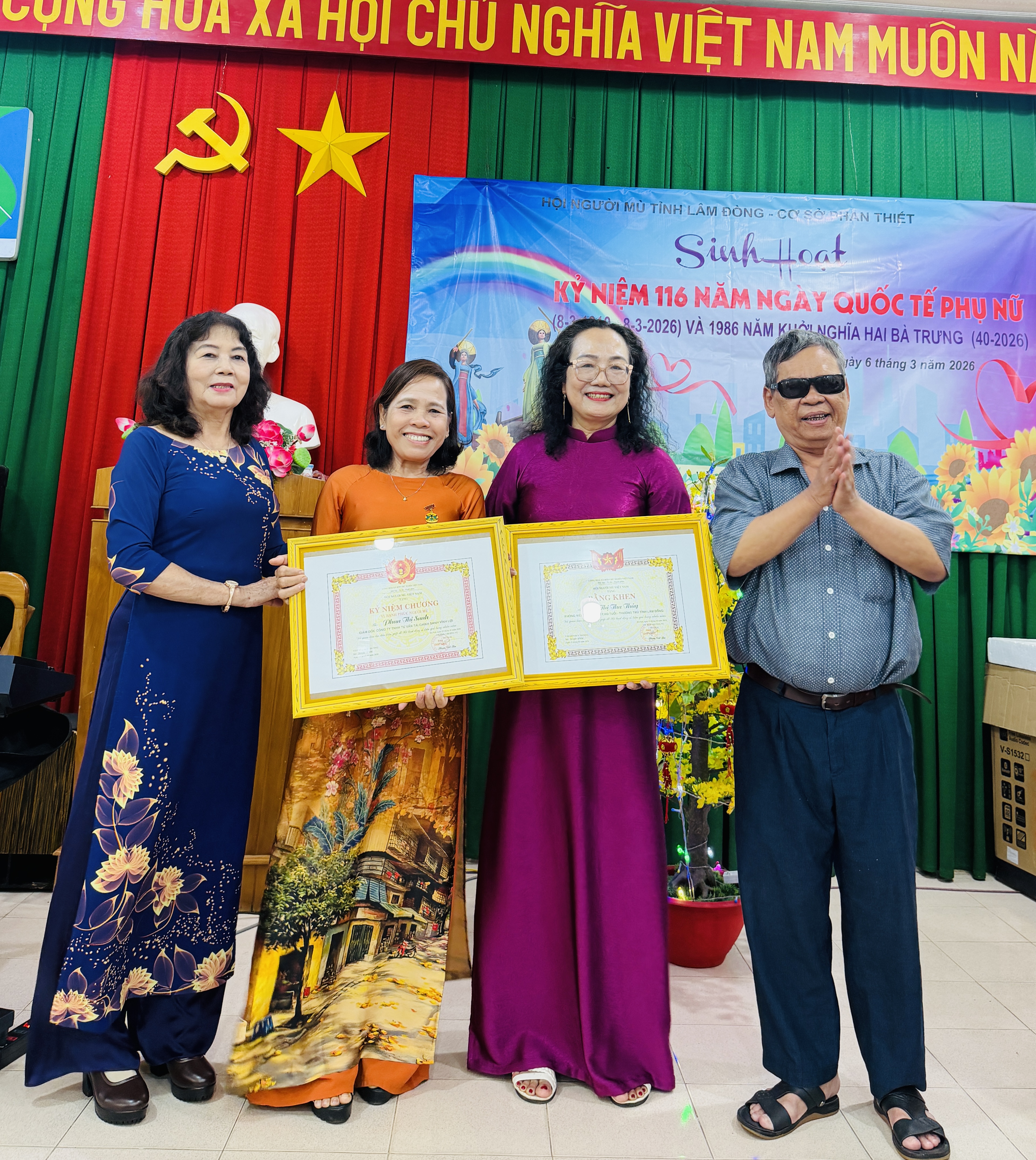 Hoạt động sinh hoạt và tặng quà nhân Ngày Quốc tế Phụ nữ là chương trình được Hội Người mù tỉnh Lâm Đồng duy trì tổ chức hằng năm. Đây không chỉ là sự quan tâm, sẻ chia thiết thực đối với hội viên, mà còn là nguồn động viên tinh thần ý nghĩa, giúp chị em khiếm thị thêm tự tin, nghị lực trong cuộc sống, tiếp tục vươn lên hòa nhập cộng đồng.
