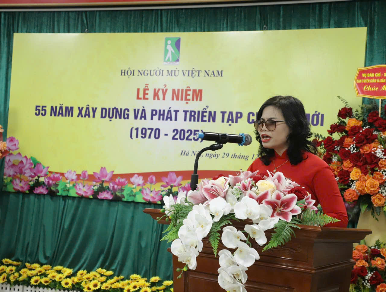 Phát biểu tại Lễ kỉ niệm, đồng chí Nguyễn Hồng Ngọc, Phó Vụ trưởng Vụ Văn hóa và Xã hội, Ủy ban Văn hóa và Xã hội của Quốc hội khẳng định: Tạp chí đã có 55 năm bền bỉ cùng người mù cả nước dựng xây cuộc đời mới. Những thành quả qua quá trình 55 năm hoạt động của Tạp chí đã được Đảng, Nhà nước đánh giá cao và đóng góp vào thành tích chung của Hội.